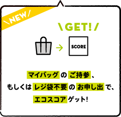 | エコスコア | アプリIDの提示して*1 マイバックの持参もしくは、 レジ袋不要の申し出 |