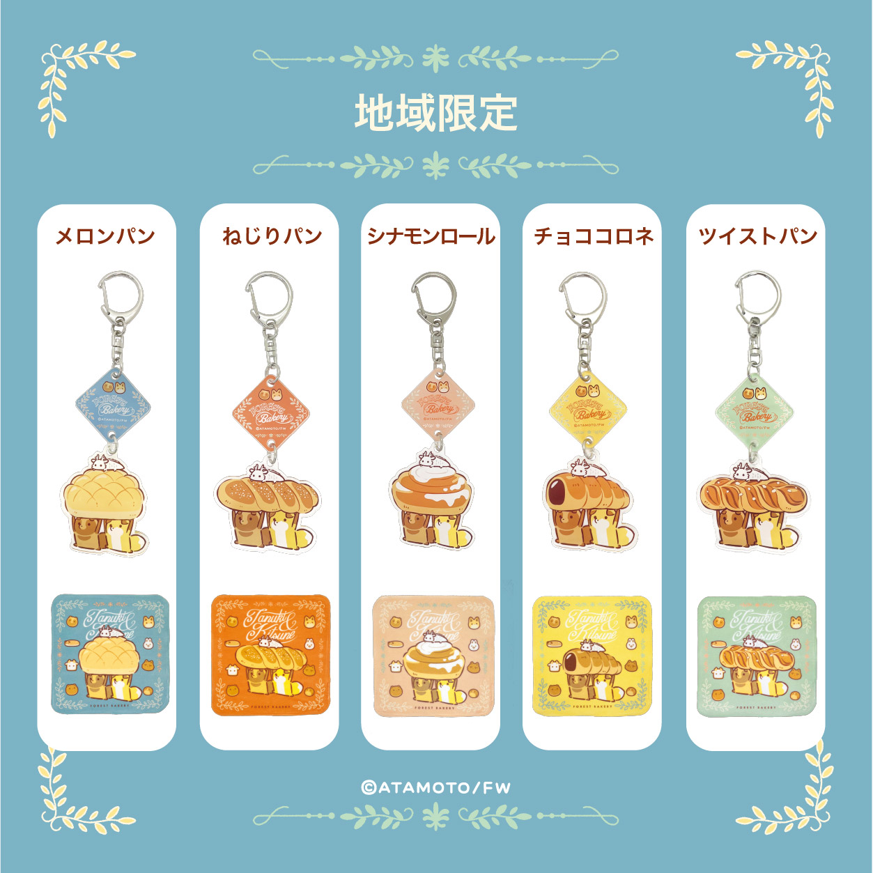 今回は「FOREST BAKERY」をテーマに、アタモト先生描き下ろしイラストグッズやご当地限定柄グッズも登場します。