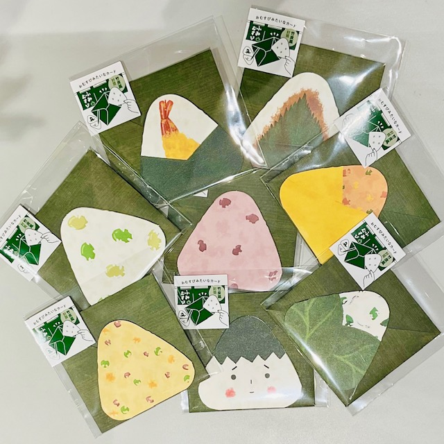 ふみ(文)+おむすび=「ふみむすび」。まるで“おむすび”みたいな「ふみむすび」は、おむすび型の可愛いメッセージカードです。