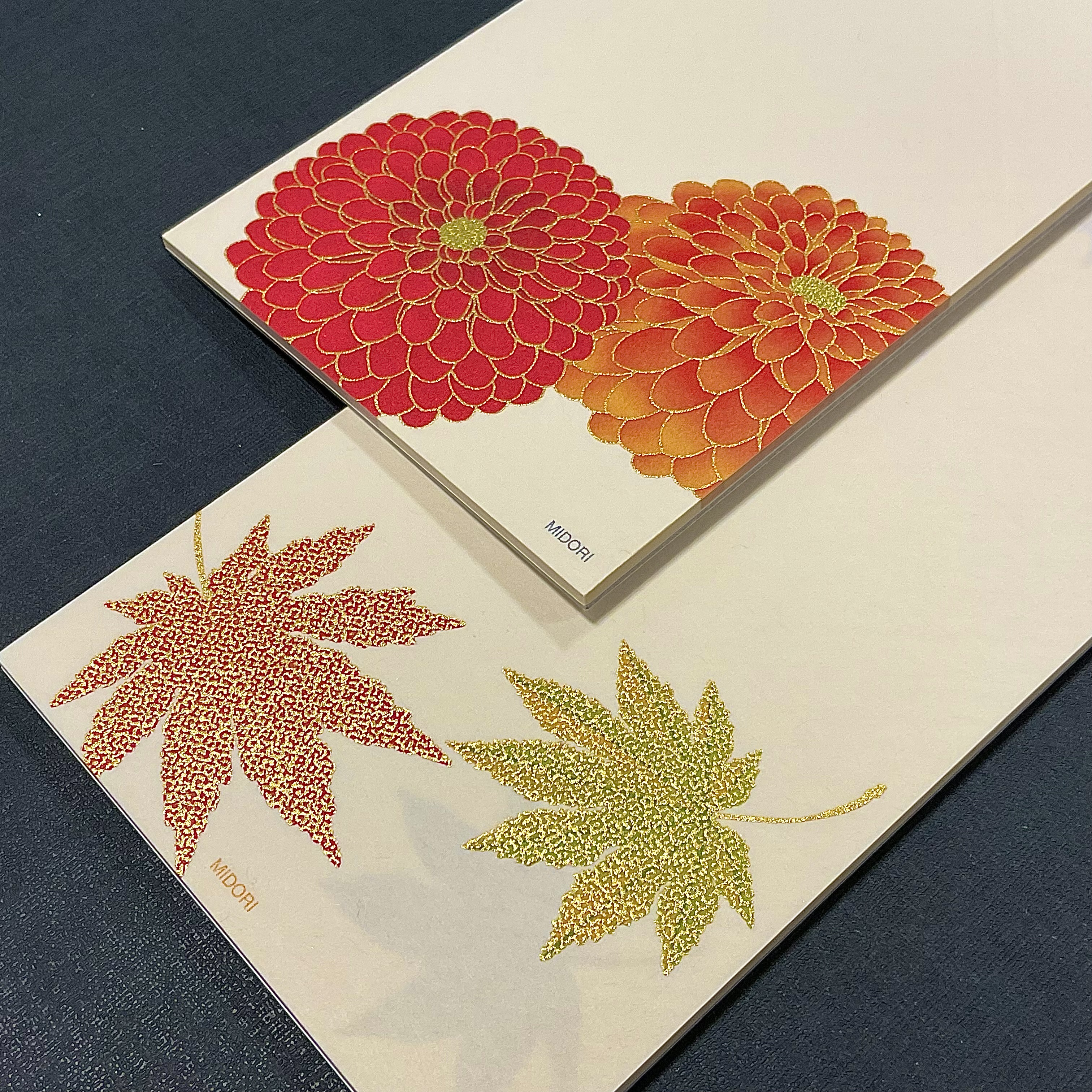 ・一筆箋 シルク 落ち葉/ポンポン菊 各種 税込528円