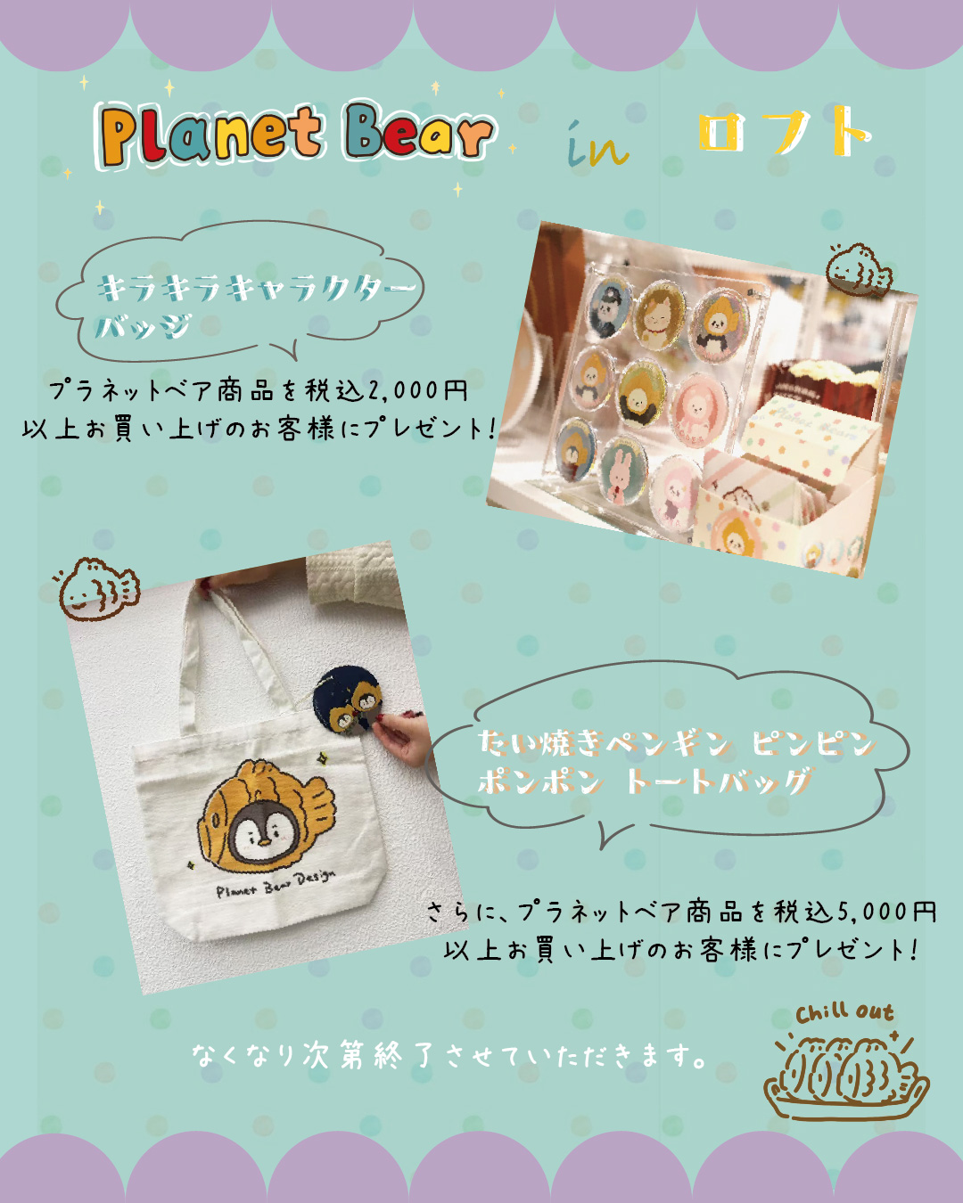 ②税込5,000円以上お買上げで『たい焼きペンギン ピンピン ポンポントートバッグ(全1種)』を1つプレゼント。