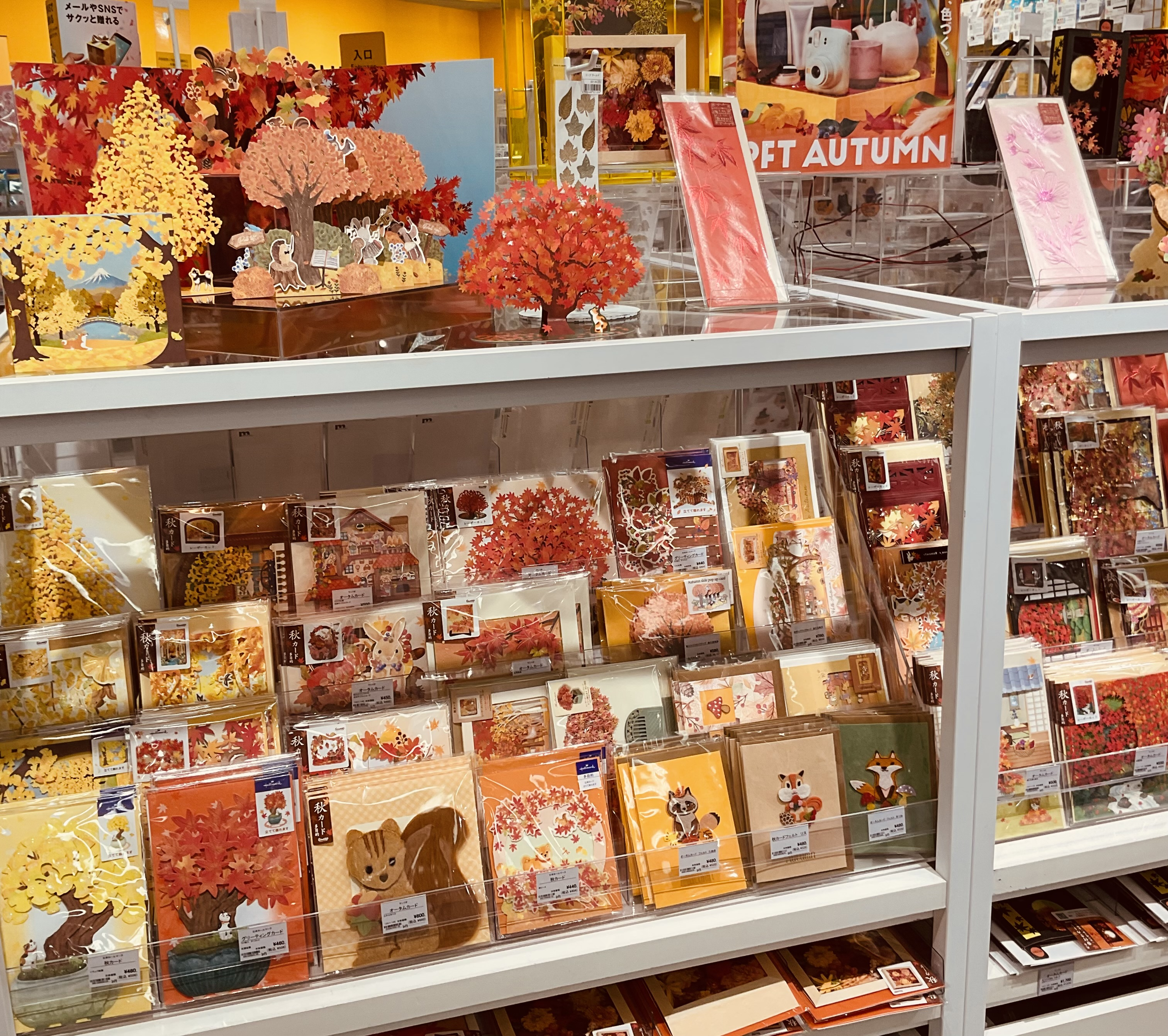 福井ロフトではコスモスや紅葉など暖かみのある色合いの秋カードが入荷しております。秋の風物詩を落とし込んだ立体カード・ポストカードを多数お取り扱いしております。ご自身のお部屋に飾っても贈り物に添えるカードとしてもお勧めです。