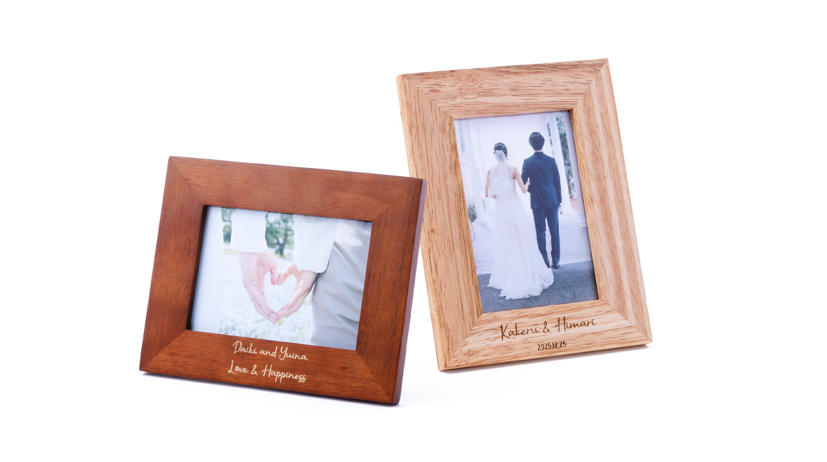 日々に彩りを添えてくれるフォトフレーム。記念日やお名前など、お好きなメッセージを刻印することができます。