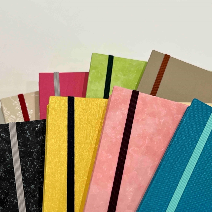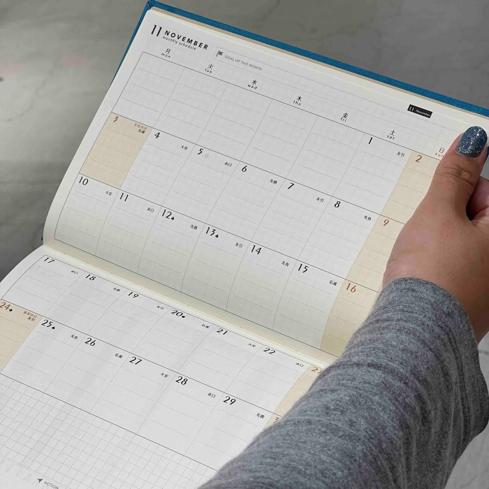 据え置き用かと思いきや、ハードカバーのおかげで立ったままでも書きやすく、外使いも可能。表紙の質感や製本にも細かなこだわりがあるようです。