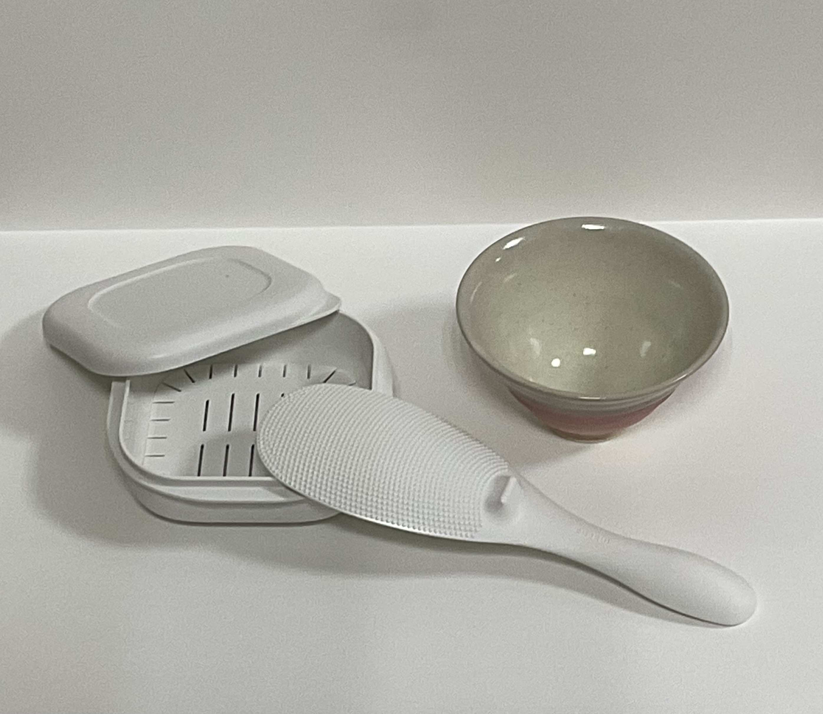 容器の大きさは小盛、一膳分、大盛の3種類。お手入れしやすく、収納性の良いシンプルなデザインとなっております。