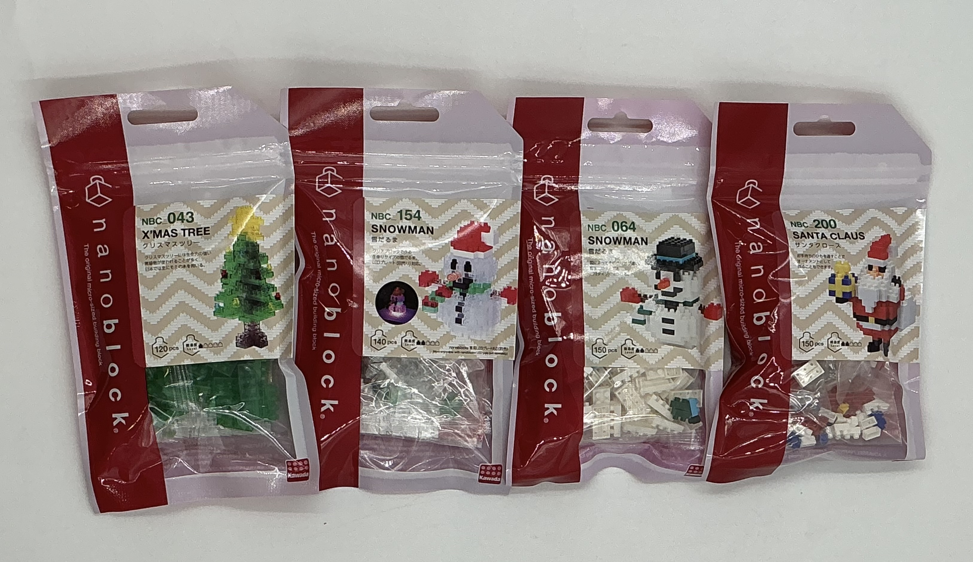 また、「トナカイ」や「ケーキ&シャンパン」など6種類の内のどれか一つが入ったミニナノブロックが入荷しました。