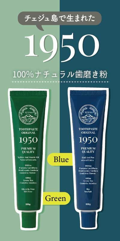 ハルラ(漢拏)山の標高を意味する「1950」は、韓国チェジュ(済州)島の自然を取り入れた、エコフレンドリーなオーラルケアブランド。ハルラ山で採取した5種のハーブを配合し、100%ナチュラルな成分で作られた地球にやさしい歯磨き粉です。
