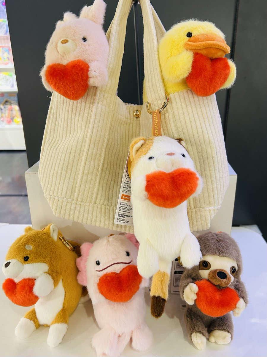 ナマケモノのノッソリ―、ミケネコのニャンティ、アヒルのジョニー、ウサギのホップ、シバイヌのキナコ、ウーパールーパーのフェアリーがラインナップ。あなたのお気に入りはどの子ですか。