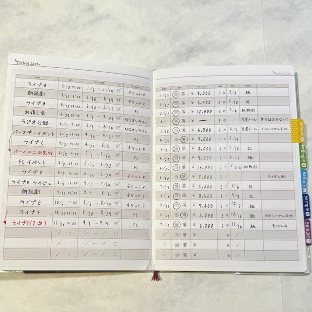 CD・雑誌の発売日、テレビ出演などの記入欄はもちろん、LIVE・舞台の日程やチケットの申し込み、グッズ取引、会員情報管理など、多彩なページで「推しごと」をサポートしてくれます。推しの情報やスケジュールを取りこぼさないために、この手帳を活用してみてはいかがでしょうか。かけもちで「推しごと」をしている方にもおすすめです。