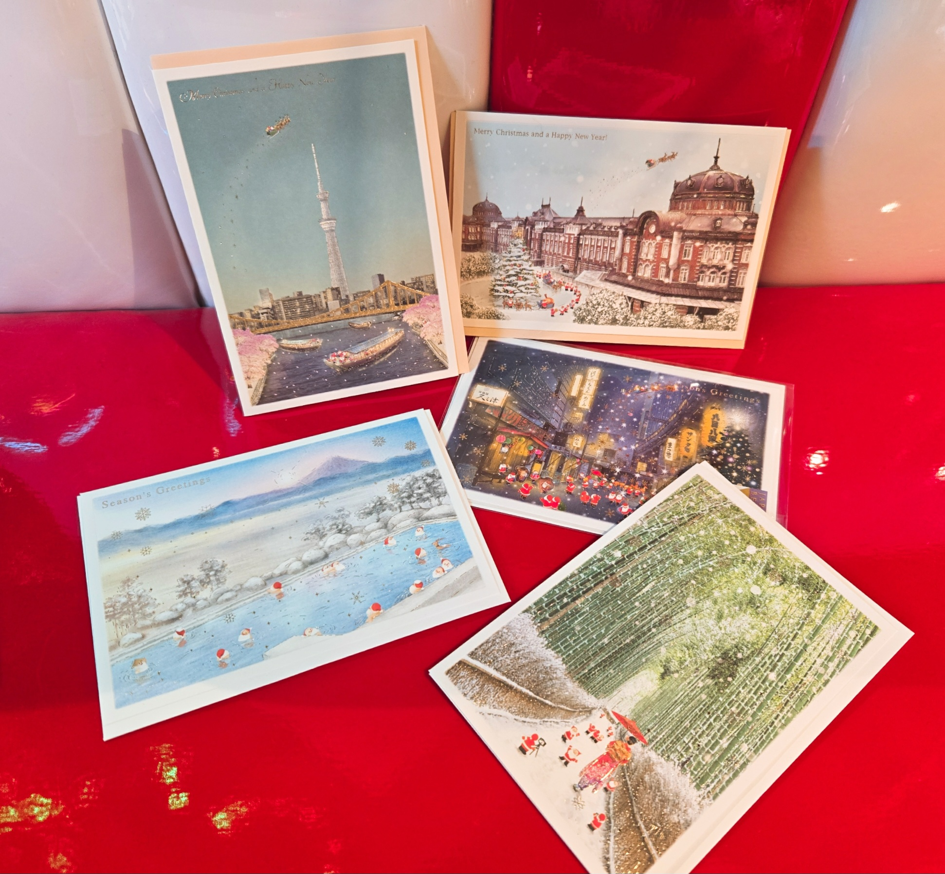 「ミニサンタカード」は、富士山やお寿司、神社、仏閣など、日本ならではのモチーフと小さなサンタさんが描かれているユニークなデザインのカードです。日本のどこかを旅するミニサンタの姿はとてもかわいらしく、送る側も送られた側も笑顔で溢れ、温かい気持ちを届けることができます。種類豊富なデザインから、お気に入りの1枚を見つけてください。