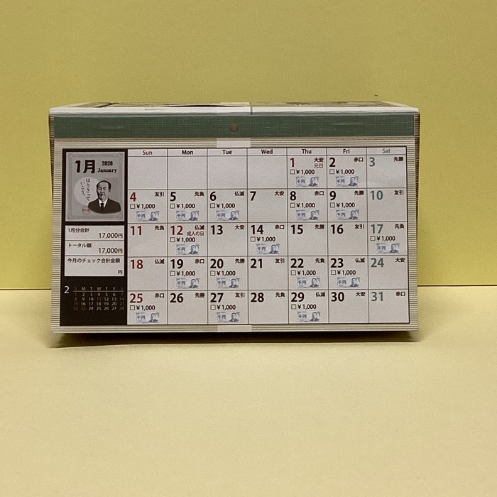 毎日のように目にするカレンダー、そこに書かれた金額を指示通り貯めていけば一年で目標額の貯金ができます。