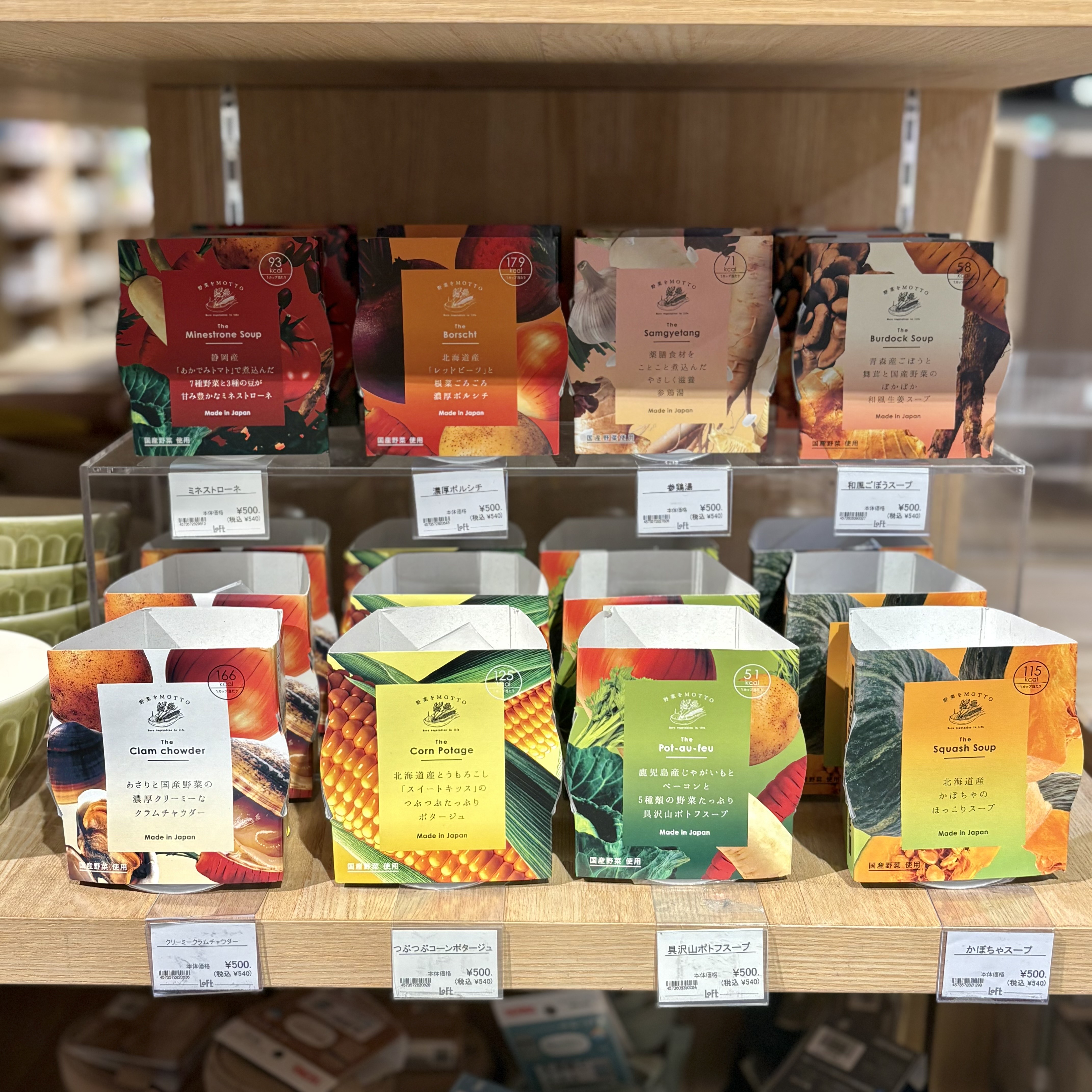 ミネストローネやポタージュ、あさりやごぼうを使った和風のスープなど、幅広いラインナップの「野菜をMOTTO」。カップのままレンジで1分温めるだけで、ゴロゴロ野菜がたくさん入ったスープが完成します。いつもの食事にプラスしたり、朝食や間食にいかがですか。丸みのあるフォルムがかわいらしいスープカップとあわせて、ギフトとして贈るのもおすすめです。