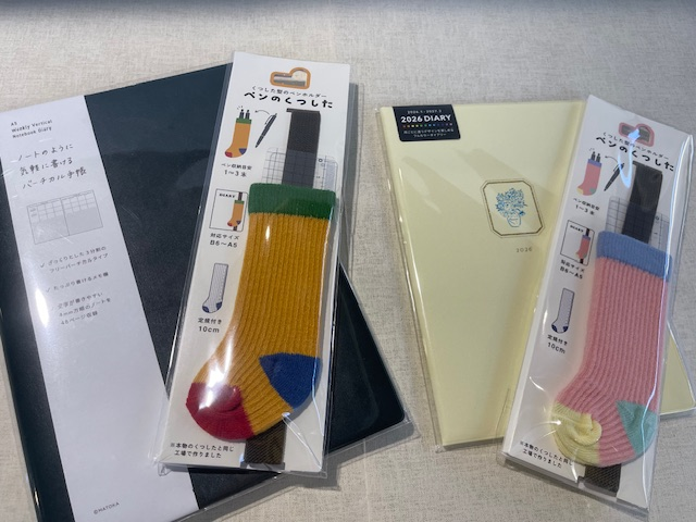 本物の靴下を、そのままミニチュアにしたようなペンホルダーが登場。靴下工場で編みあげているので、質感と縫目はまるで本当の靴下のような仕上がりです。ペンは1~3本収納でき、B6サイズとA5サイズの手帳に対応しています。豊富なカラーバリエーションの中から、手帳のアクセントになる色を選んだり、複数買いしてその日の気分で変えて楽しむのもおすすめです。