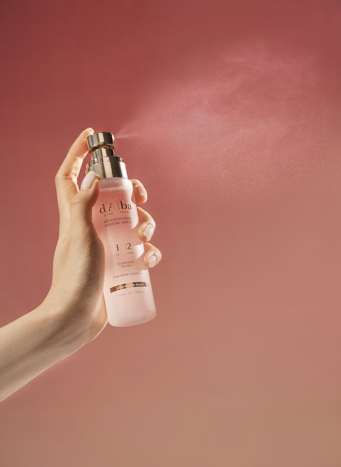 パフュームセラムは細かいミストが髪を優しく包み込み、ツヤと弾力が続きます。