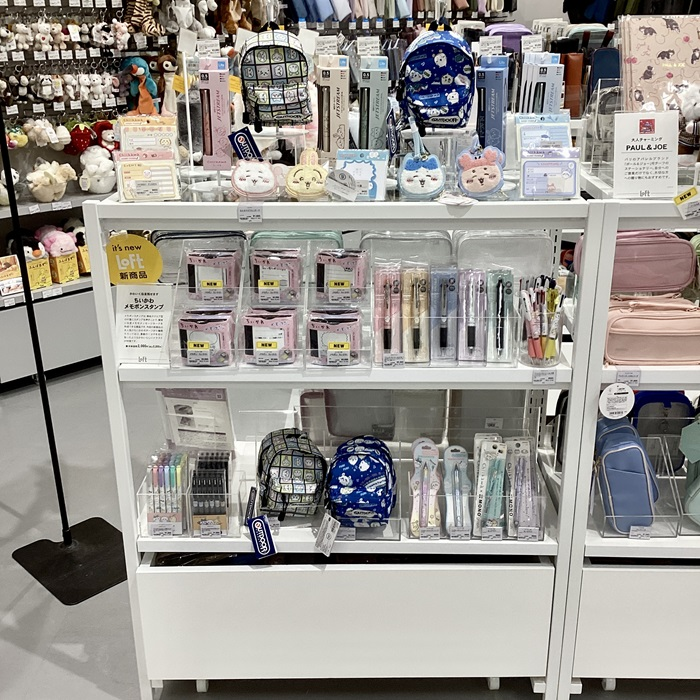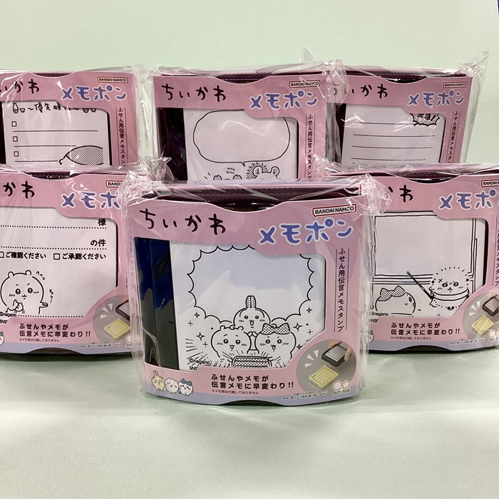 こんにちは、ロフト国領店文具雑貨からご案内です。大人気キャラクターのちいかわのコラボ文具が一挙に集結。三菱鉛筆のジェットストリームからダイアリーデコ商品まで様々なちいかわ文具が取り揃えております。また、新しく「ちいかわメモポンスタンプ」が発売。こちらは無地の付箋にスタンプを押すことで、簡単に伝言メモやメッセージカードを作成できる商品です。