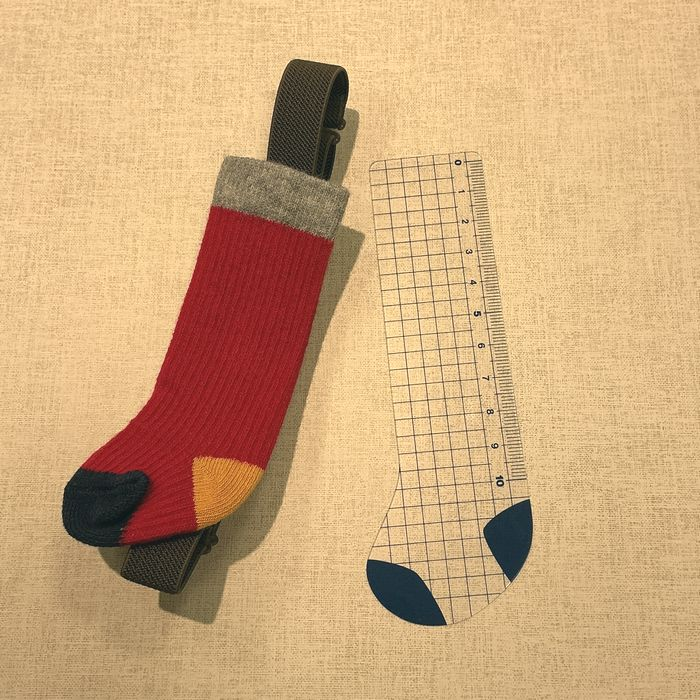 くつした型の定規(10cm)が付属しており、収納するペンのクリップを定規に挟んで固定することができます。