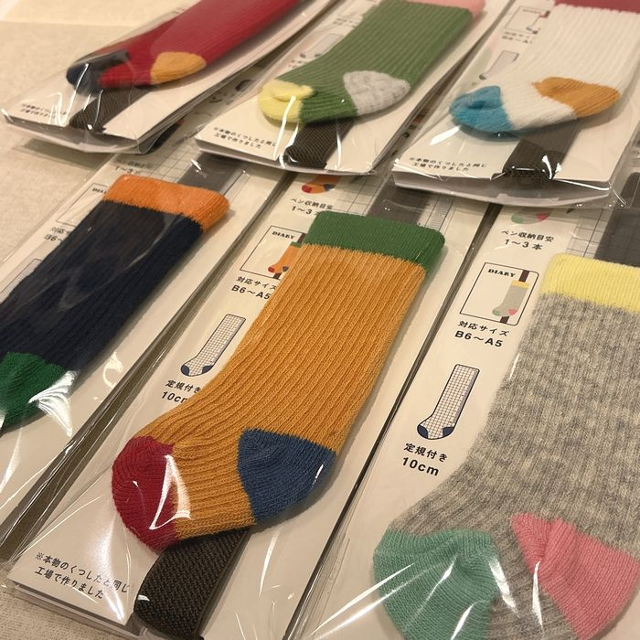 「ペンのくつした」は、ベルト付きで手帳やノートと一緒に持ち歩けるペンホルダー。