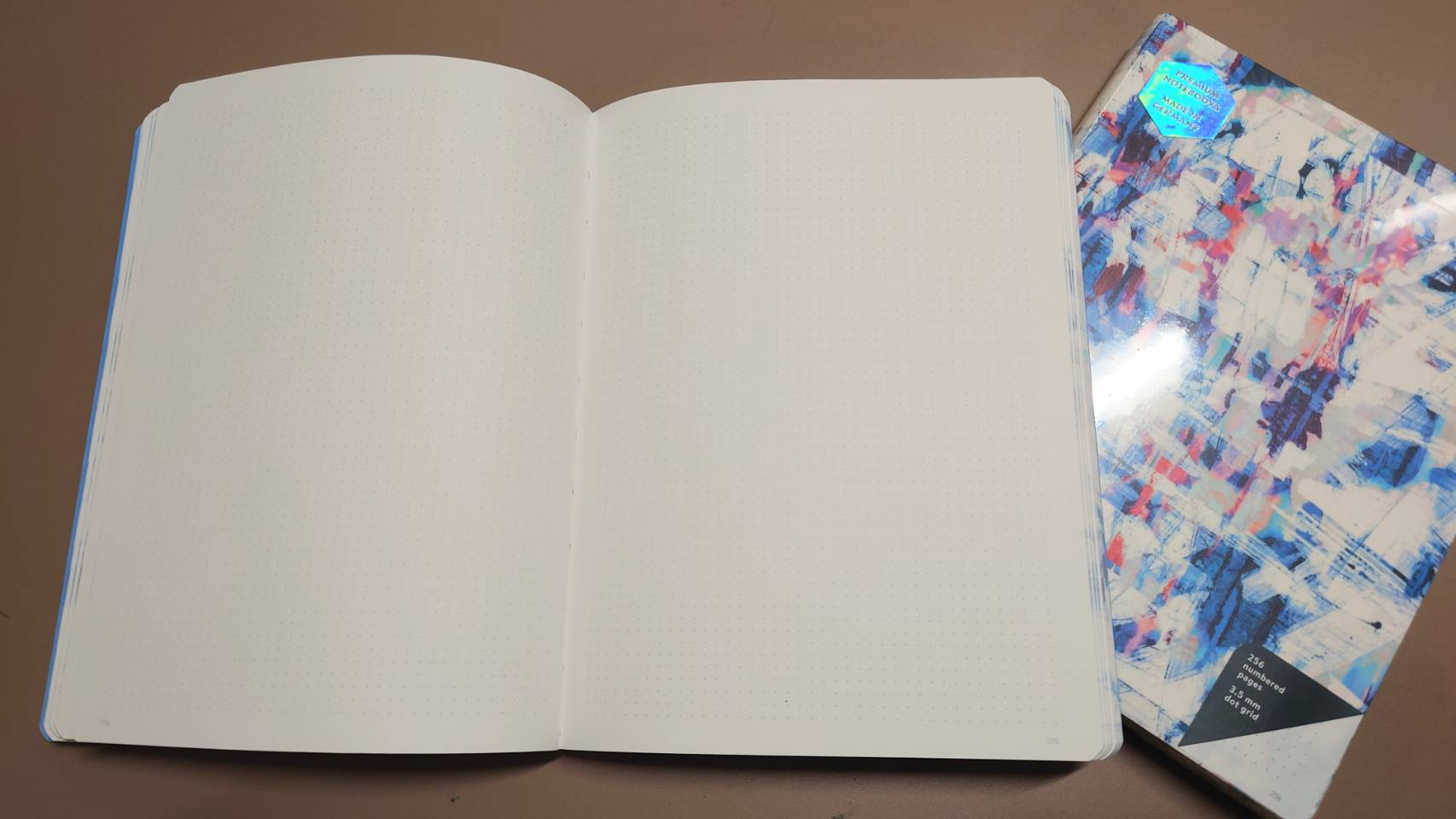 ノートの紙はドットのフォーマットでありながら、縁が彩られているものや、プリントが描かれているものなどさまざまなデザインがあり、ページ下には小さくページ数も記されています。