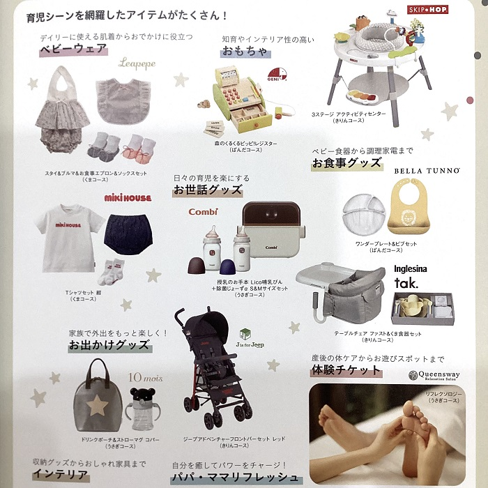 ベビーウェアやおもちゃはもちろん、パパ・ママにも嬉しいリフレッシュグッズ、ご褒美グルメなど、充実のラインナップです。
