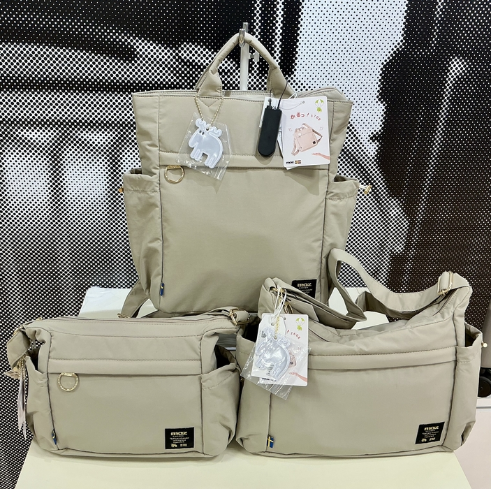 「エルク(ヘラジカ)」モチーフでおなじみの「moz(モズ)」より、デイリーユースに欠かせない軽撥水加工を施した、ボンディング生地使用のシリーズが登場しました。驚くほど軽く、丸みのあるシルエットで見た目も手触りもやさしい質感のバッグです。内装の爽やかな若草色と外観のニュアンスカラーで、カジュアルにもきれいめにもマッチします。
