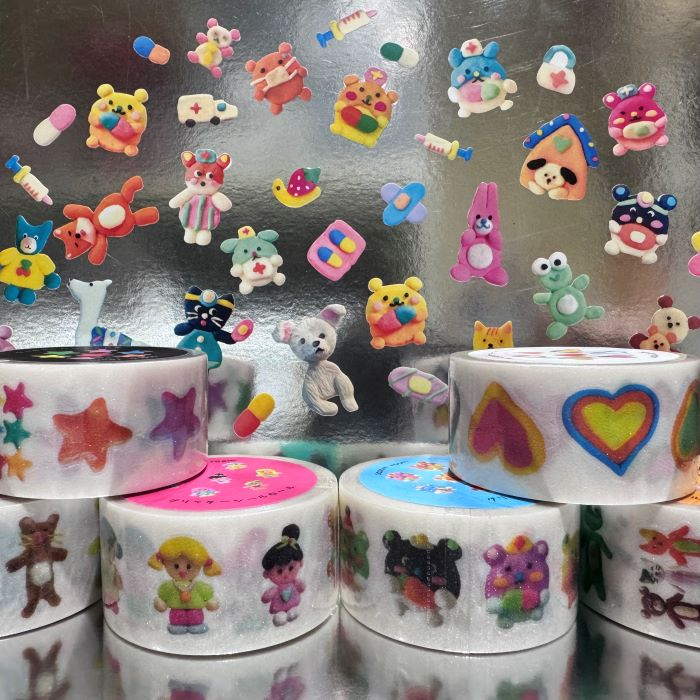 ねんどから作った動物やキャラクター、お人形などどこか懐かしく、あたたかい印象のシールばかりです。全体にラメが入り、型抜きができるロールシールや使いやすいサイズのシールなど種類豊富に取り扱いしております。