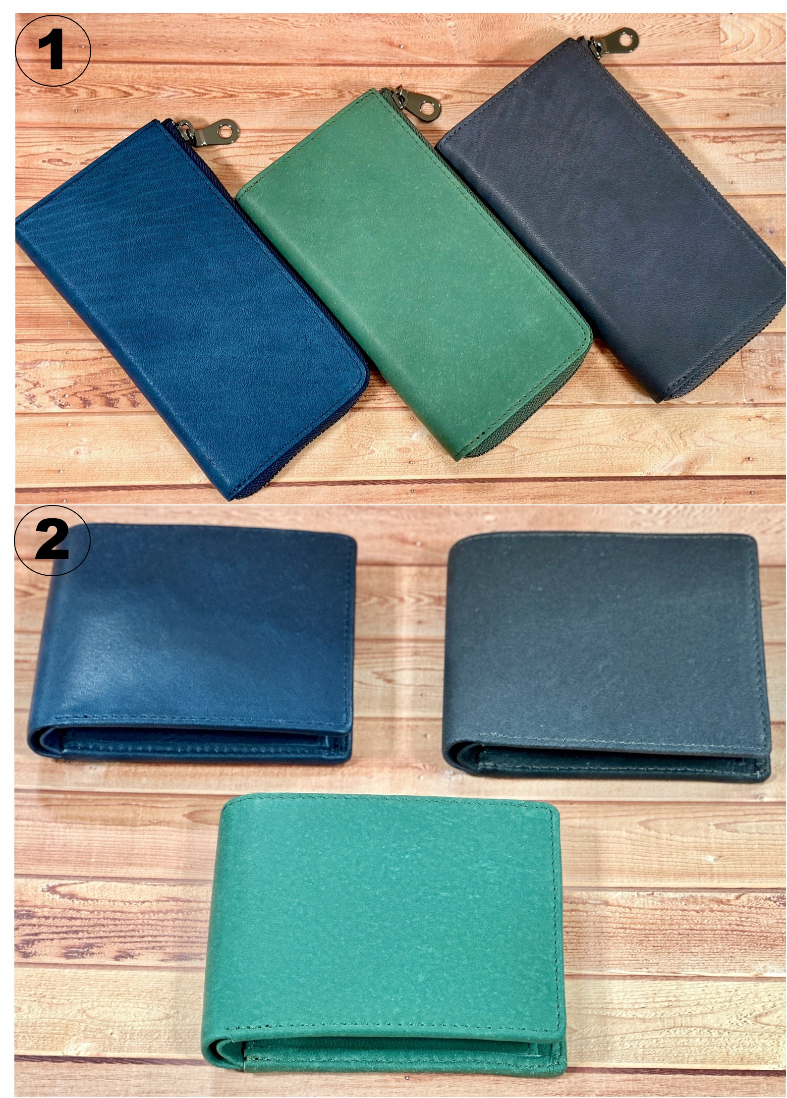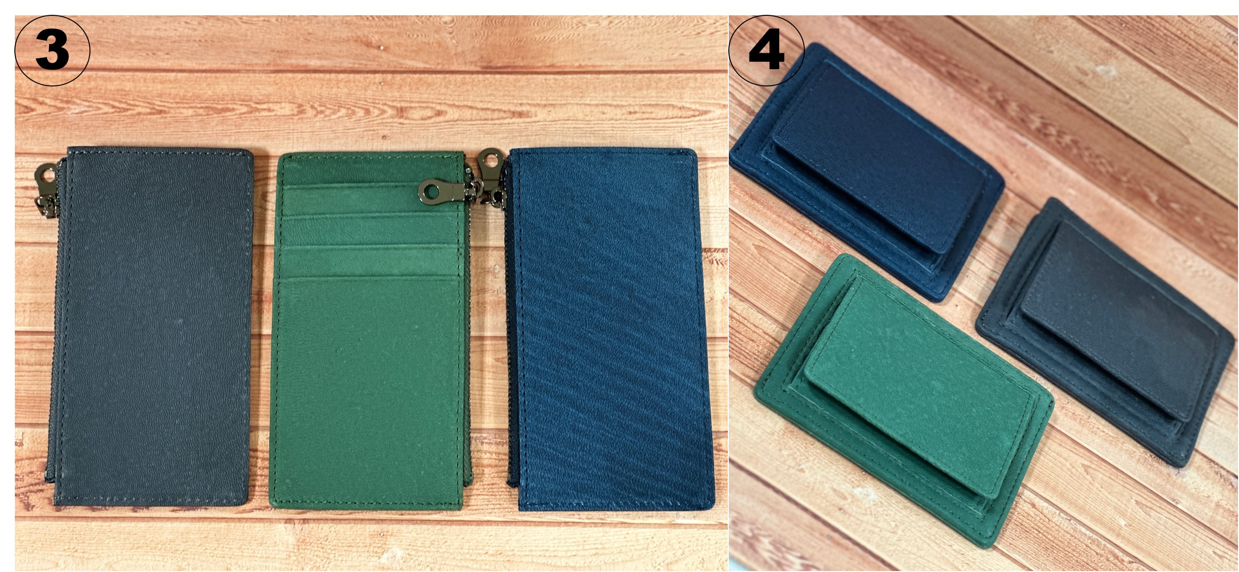 『捨てるを活かすモノ作り』プロジェクト、藍染の蝦夷鹿革を使用した「YEZODEER」シリーズの革小物。