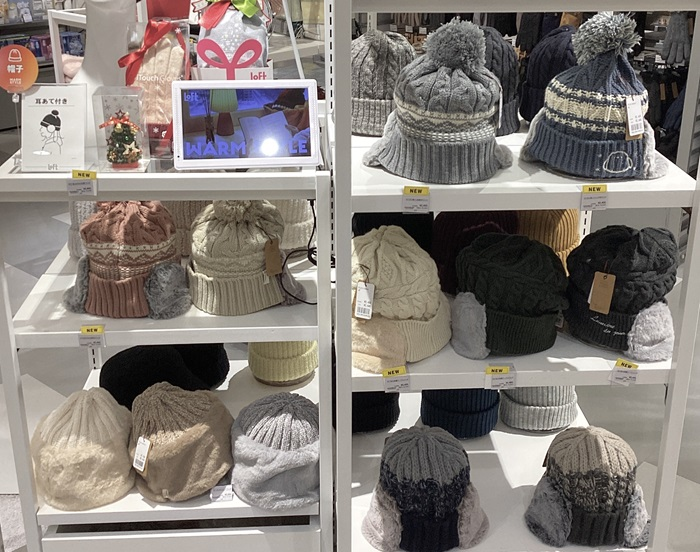 ニット帽やマフラー、ストールなど冬のアイテムを各種取り揃えております。