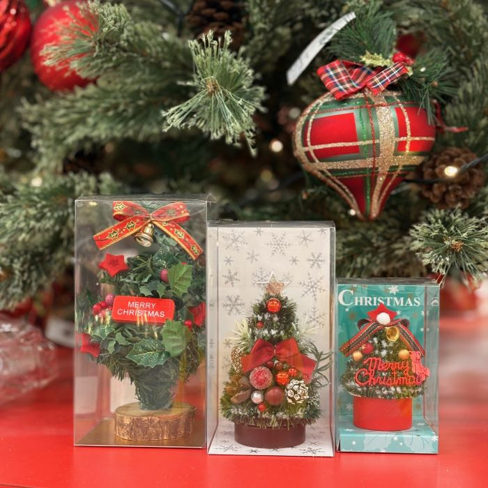 テーブルや棚の上など、ちょっとしたスペースにそっと置くだけで、お部屋の空気がふんわりクリスマス色に変わるテーブルツリー。