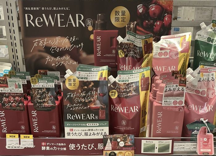 デンマーク生まれの酵素を配合して、毛羽立ちを除去して洋服をリペアする柔軟剤のReWEAR(リウェア)から冬の季節限定品「チェリーヴィンテージ&シダーウッド」の香りをご用意しております。チェリーやブラックベリー、赤ワイン、シダーウッドとムスクの香りが残る気品あふれる至福の香りとなっております。店頭にテスターをご用意しておりますので、香りをお確かめください。