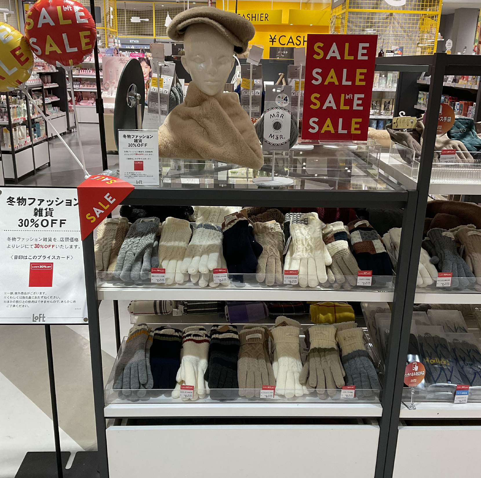 寒い日にお役立ちのあったかウォーマーが店頭表示価格よりレジにて30%OFFとなっております。お気に入りの帽子やマフラーを見つけて冬のおしゃれを楽しみましょう。