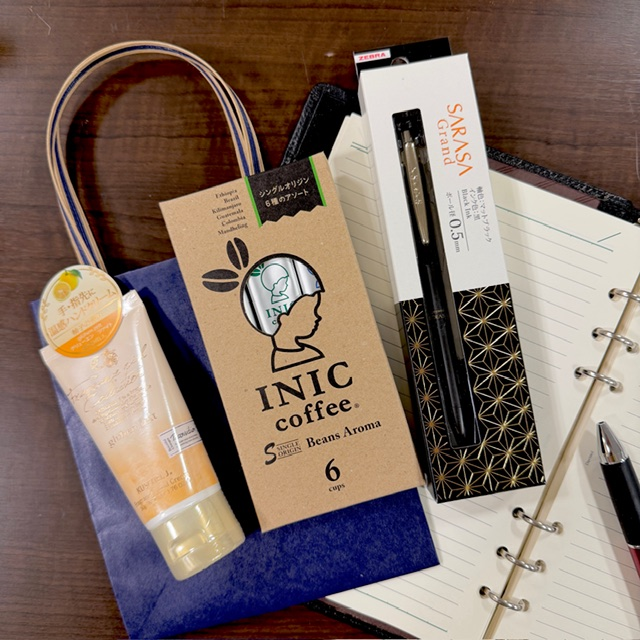 日頃お世話になっている方へ、コーヒーやペン、ハンドクリームといった渡しやすい贈り物を揃えました。