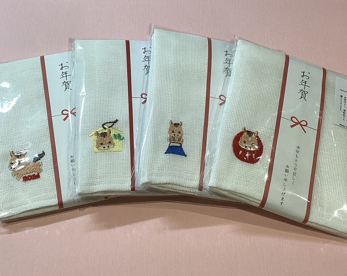 食器拭きや台拭きなど様々な用途で使ったあとは、お掃除用として長くしっかりお使いいただけるかや生地ふきんに2026年の干支の「うま」を刺繍をした商品です。