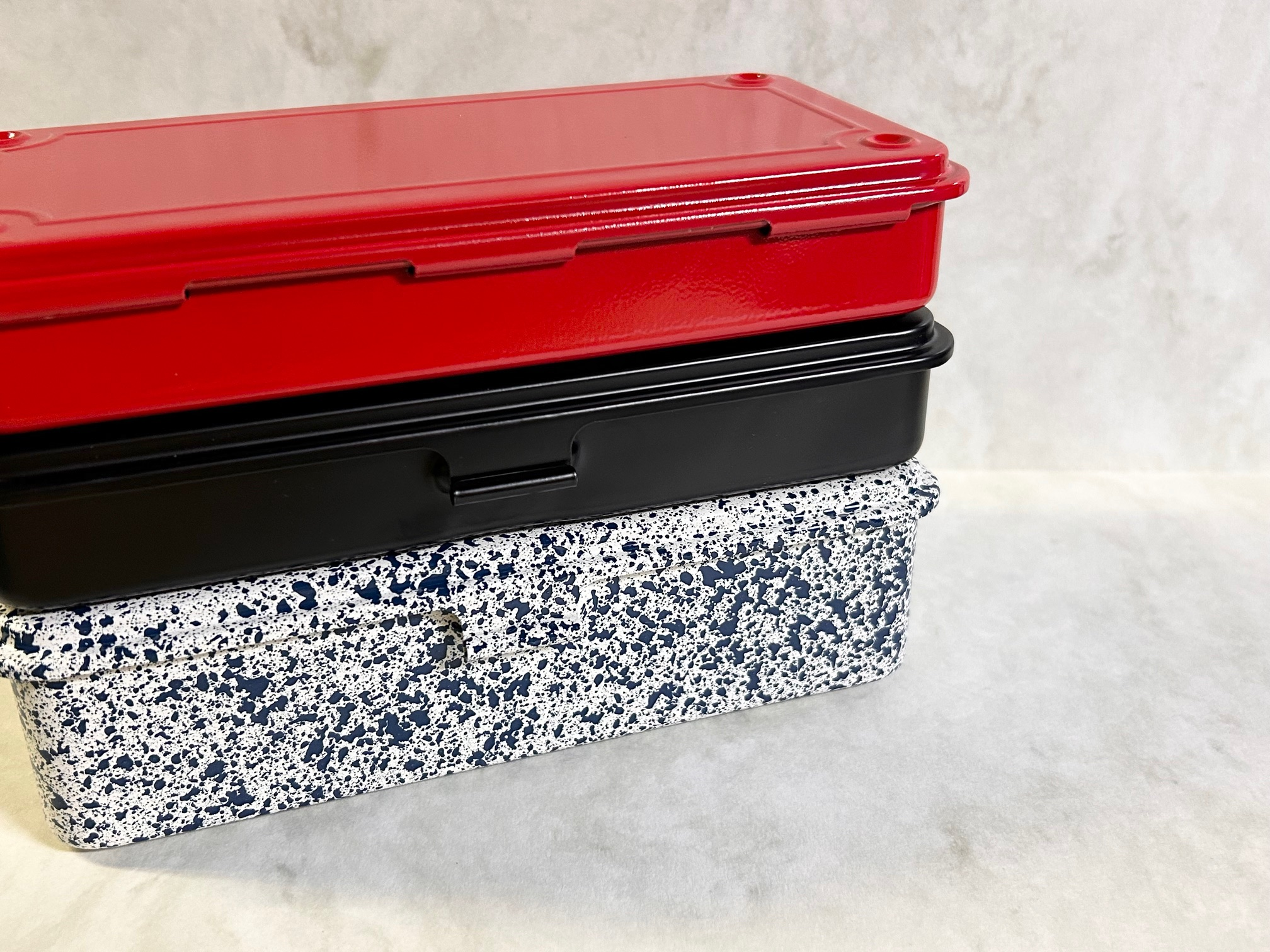1969年創業の東洋スチールは、世界初の「継ぎ目のない1枚絞り加工」による工具箱を開発し、国内外で高い評価を得る工具メーカーです。日本製の確かな品質、経年劣化も楽しめるよう計算されたこだわりの素材とデザインが特徴です。ペンケースや小物入れとしても使える小型サイズのものを中心にそろえました。ぜひライフスタイルに合わせて、お使いください。