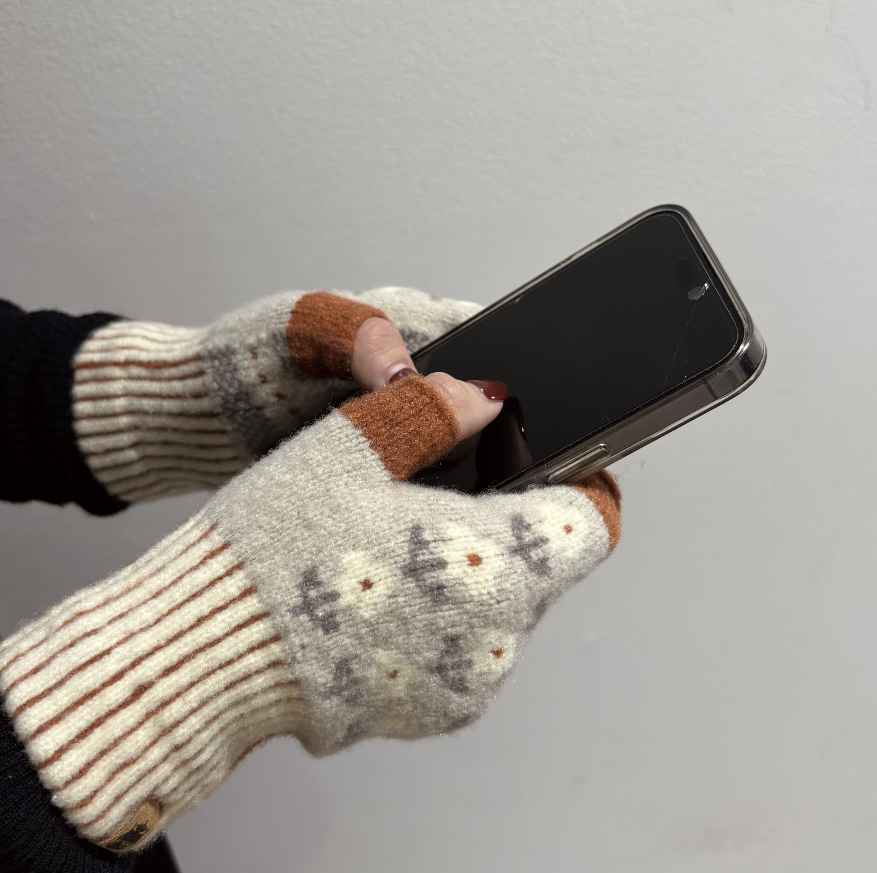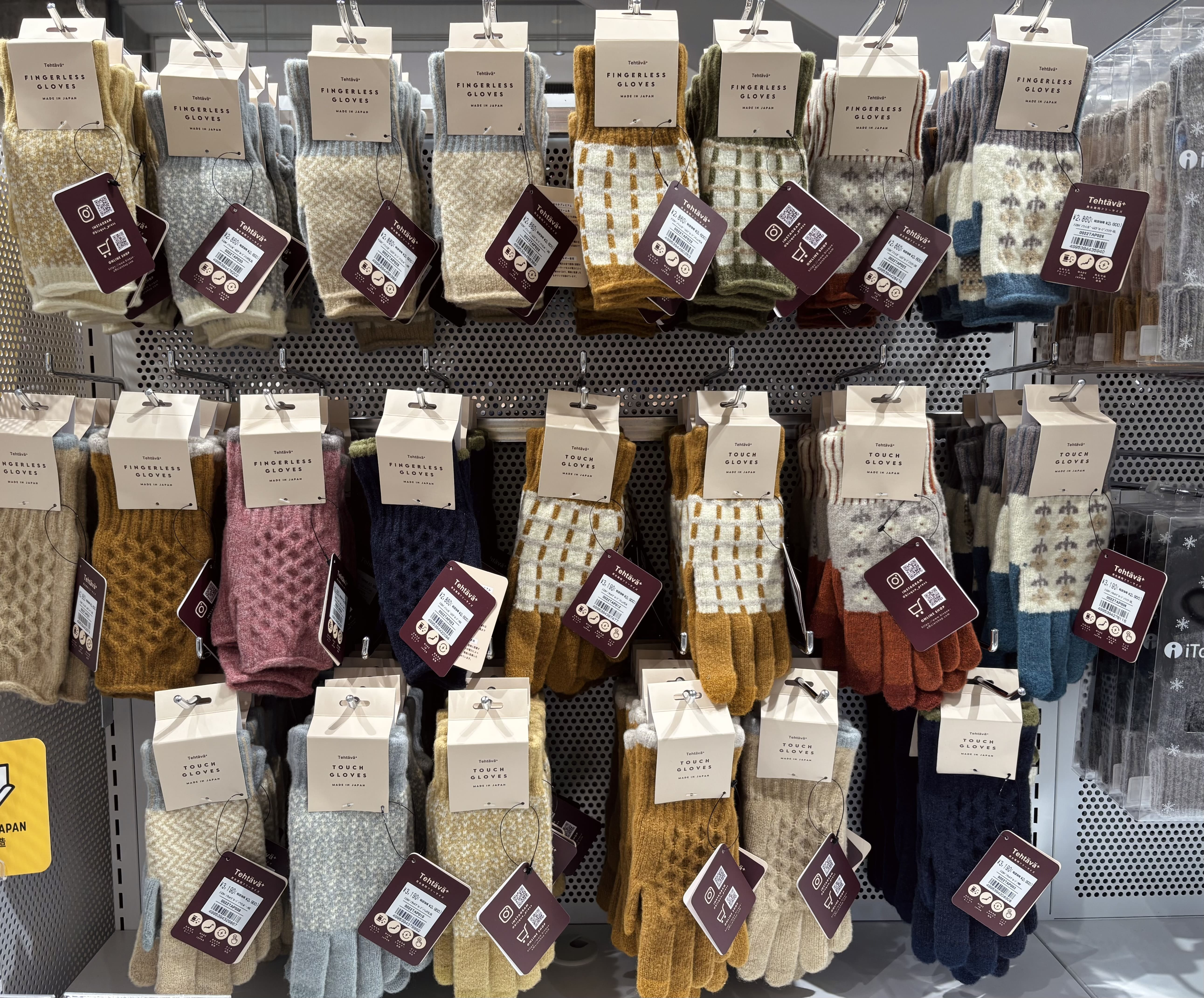 指あり・指なし、あわせて約20種類。伸びの良い糸なので、手の大きな方から小さな方にもやさしくフィットします。スマホもそのまま使える、日常にちょうどいい手袋です。ぜひ店頭で、色や柄、つけ心地をお試しください。