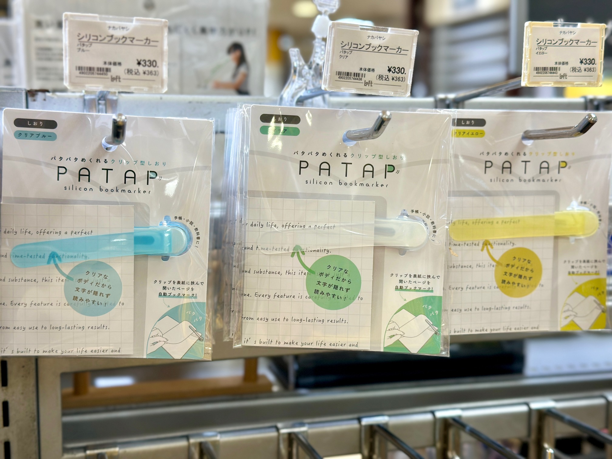 『パタップ/シリコンブックマーカー』はページをめくるたびにシリコン製のしおり部分が開いているページにパタパタと移動するので、読書中に読みかけのページを見失うという、ちょっとした煩わしさを感じずにすむブックマーカーです。