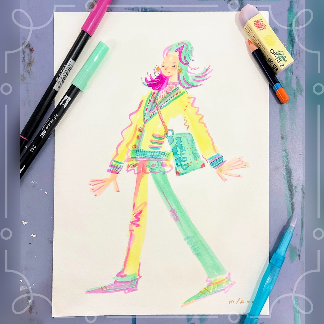 これまで全国各地のイベントで年間100人以上のファッション画を描き、昨年は韓国・ソウルおよび東京で初の個展を開催、香港での展示に参加するなど、日本に留まらずグローバルに活躍の幅を広げているMIACOが、今年も銀座ロフトに来店!
