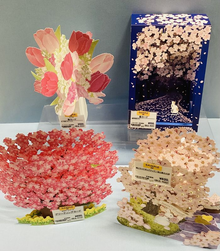 さくら満開のPOPUPカードや春の風景のポストカードなど種類も豊富にご用意ございます。