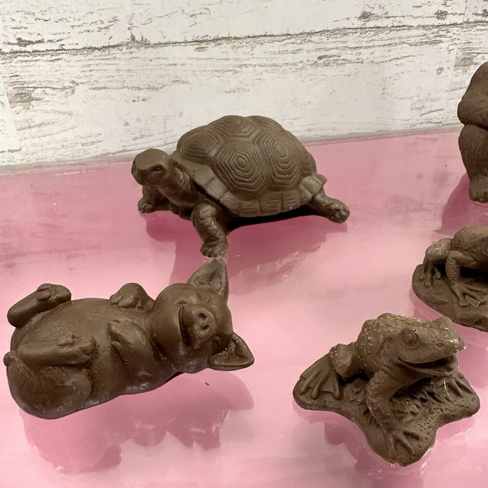 マウンテンゴリラやクロコダイル、ゾウガメなどの動物を手のひらサイズでリアルに表現したユニークなチョコレートです。