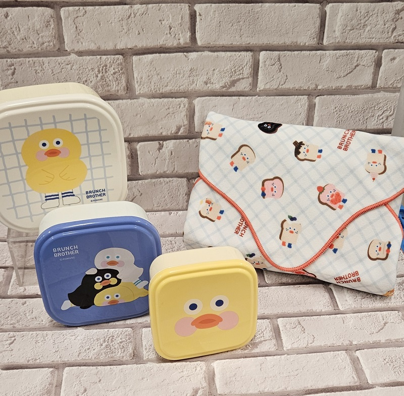 かわいい立体パーツが目を引くランチポーチやバッグに加え、お弁当箱やボトルを簡単に包める「くっつきクロス」は特にオススメ!