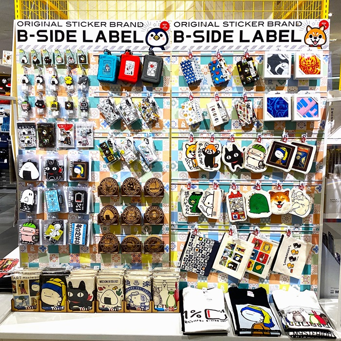 開店当初よりご来店のお客様に大人気のステッカーメーカー「B-SIDE LABEL(ビーサイドレーベル)」さんの雑貨展が現在、特別開催中です。こちらの商品は普段店頭では取り扱っていない、ステッカー以外の雑貨類の販売を期間限定で行っております。ビーサイドレーベルで人気のキャラ「おにぎり」や「オイナリサン」を始め、見た事のある定番キャラの雑貨類、ぜひお手に取ってご覧ください。※会期中随時商品の補充もございますがお品切れの場合はご了承ください。