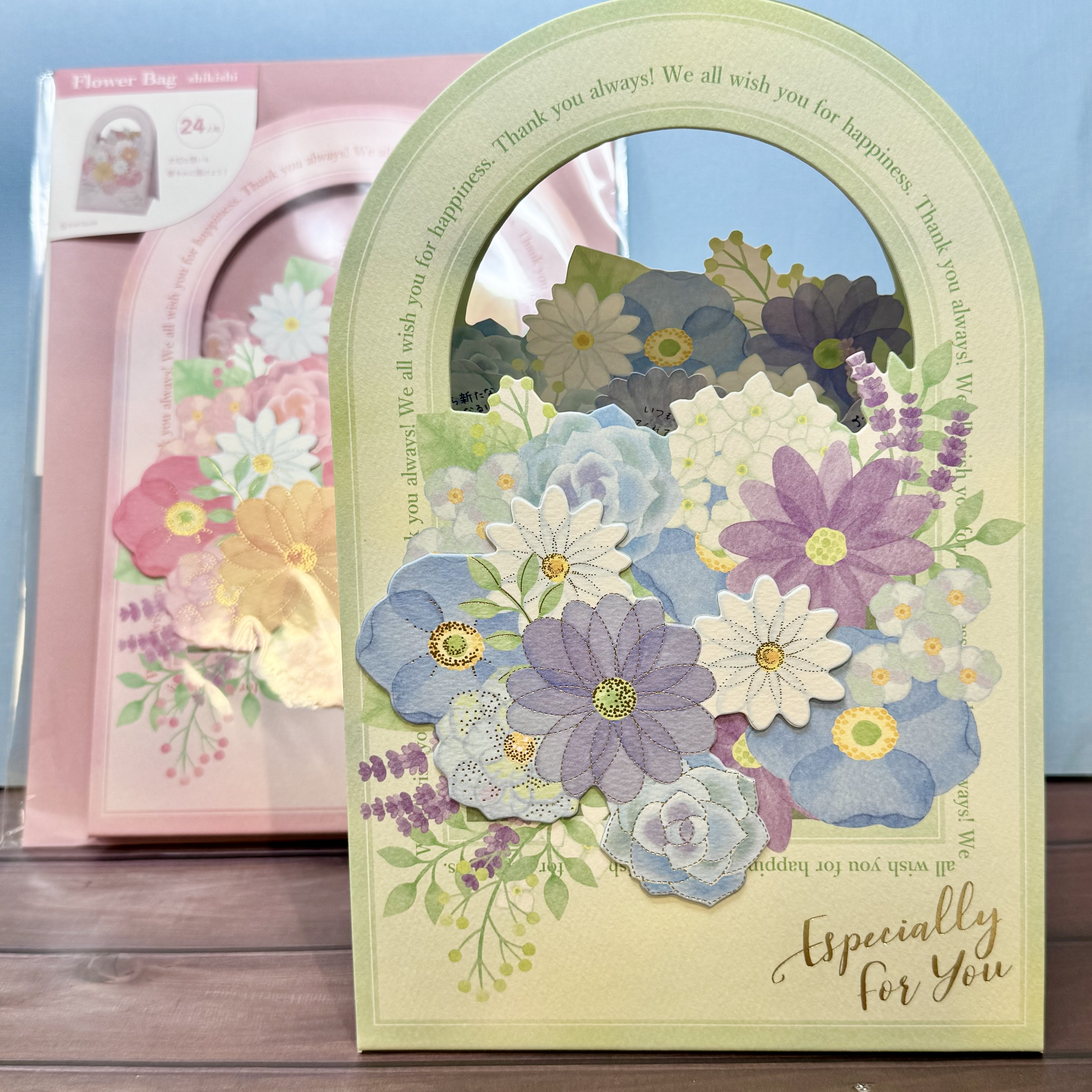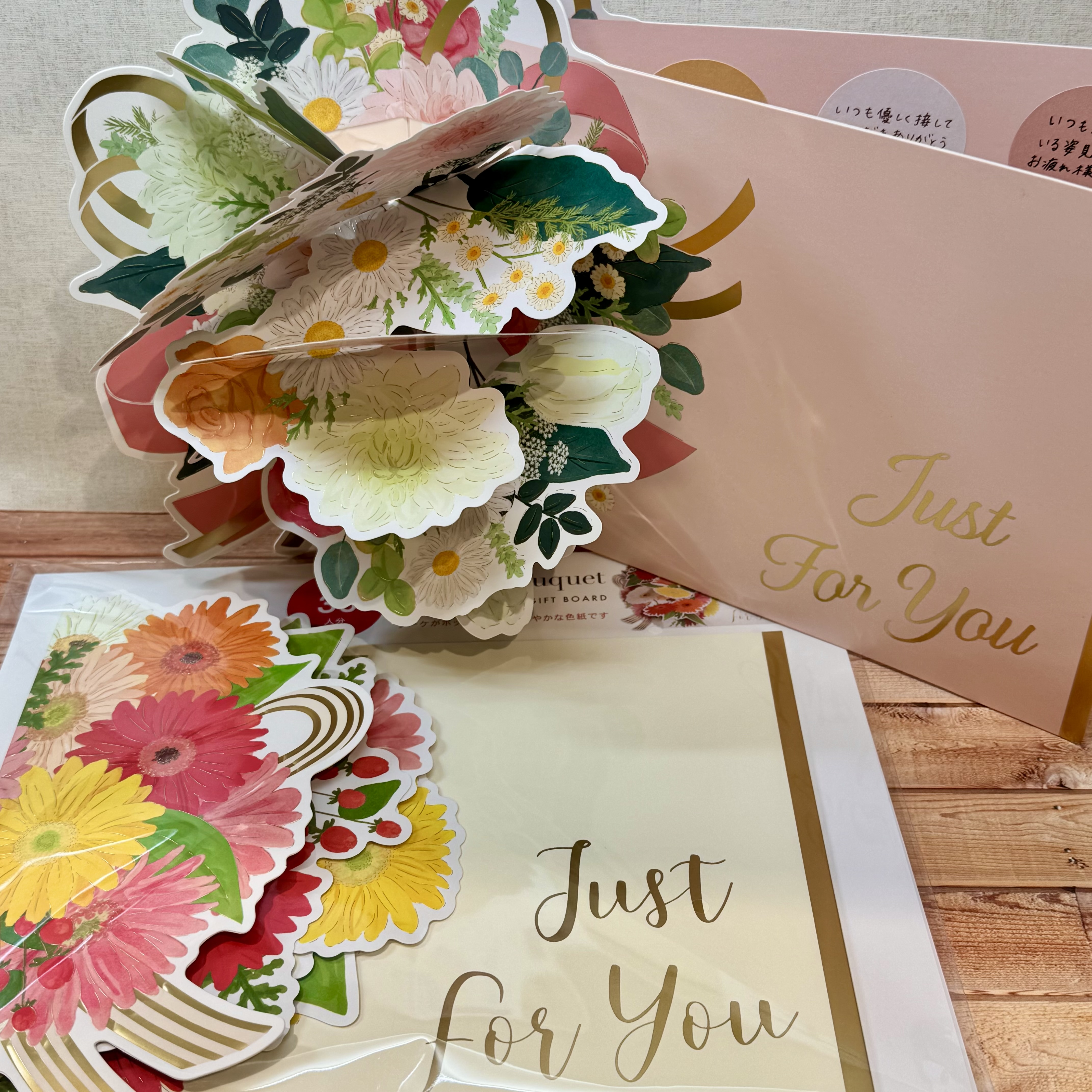 一見、色紙には見えないハートのバルーンが印象的な花束タイプのものから、広げると立体的なブーケになるポップアップタイプのものまで種類豊富にご用意してます。ぜひ、神戸ロフト文具売場へお越し下さい。