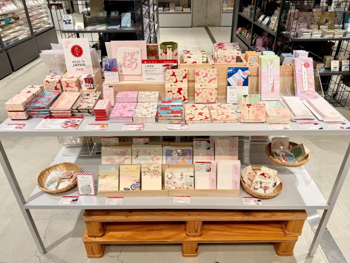 今回は春に向けて桜柄を集め、ノートやポストカード、便箋はもちろんのこと、御朱印帳やポチ袋、手鏡などもそろえました。