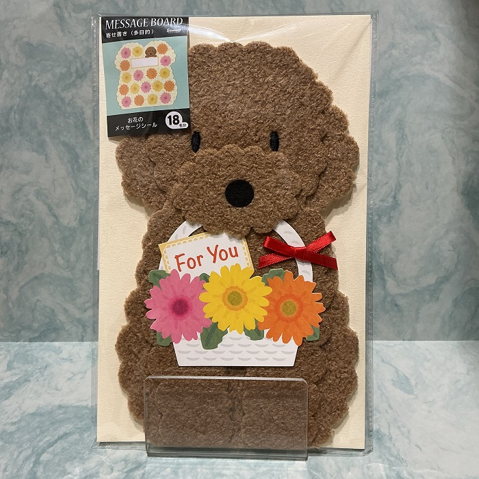 ふかふかした素材で作られた、トイプードルモチーフの寄せ書き色紙。