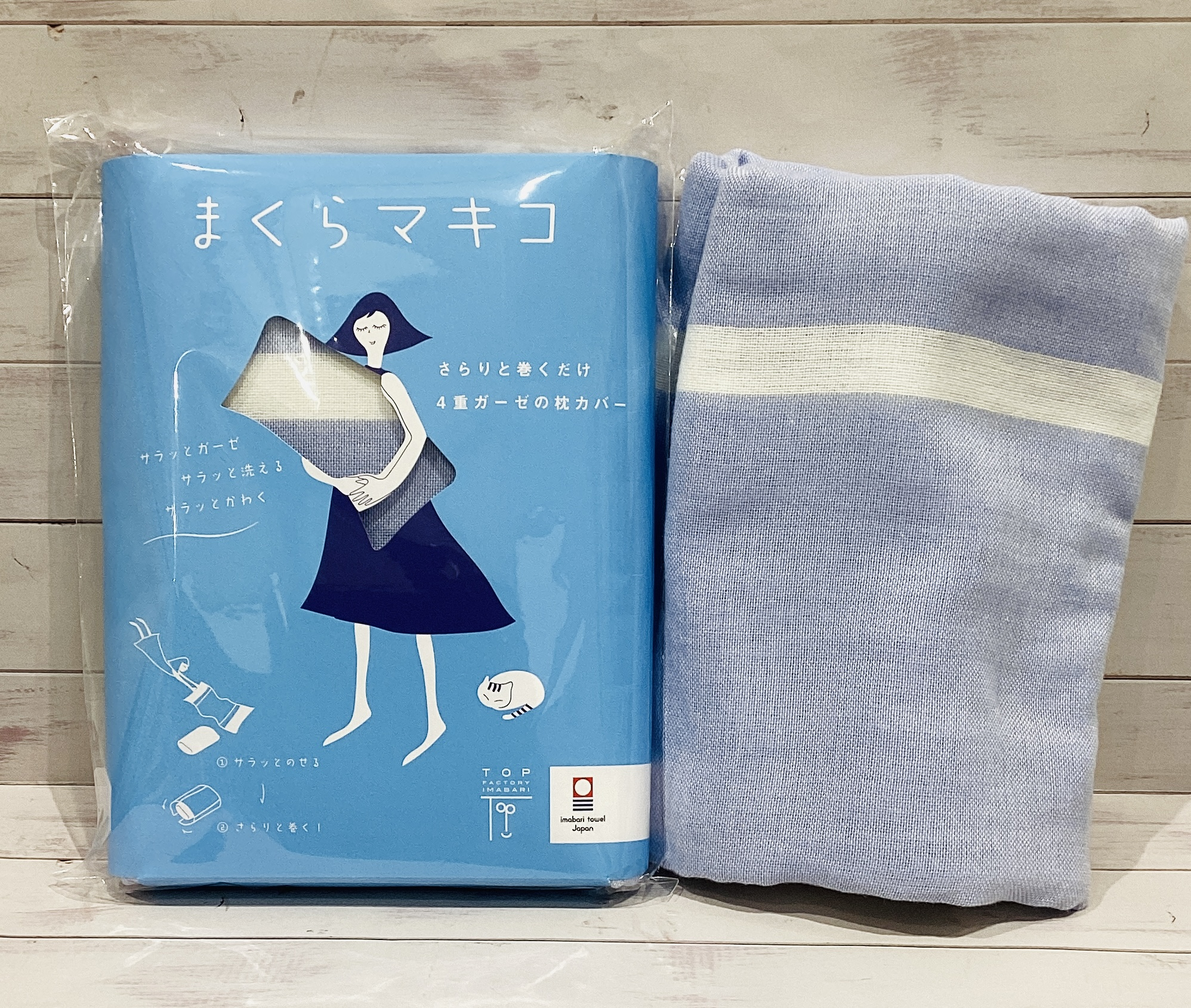 今治タオルから生まれた、見た目はガーゼタオルのようなサラッと素材の巻くタイプの枕カバーです。