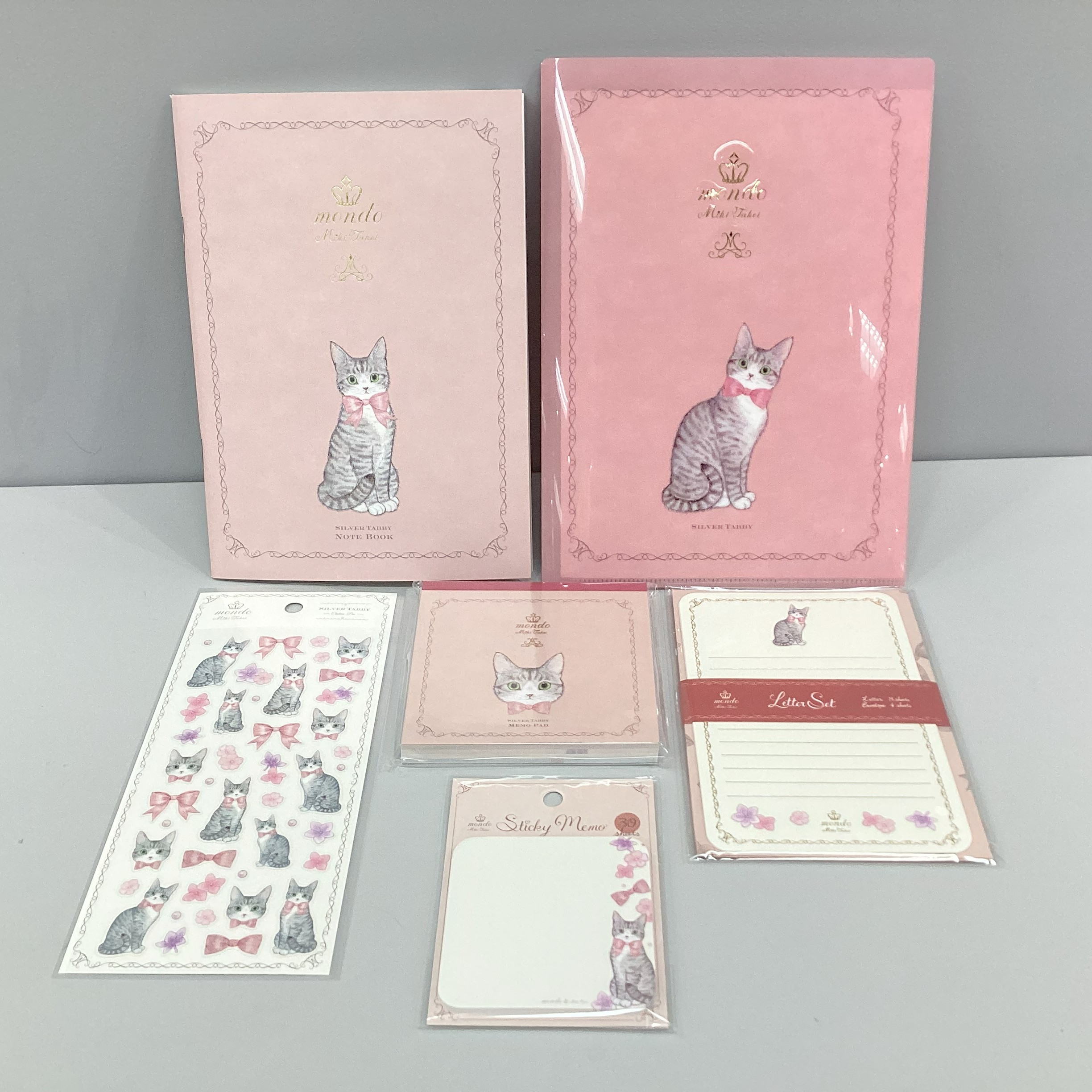 イラストレーターのたけいみきさんがデザインした文具雑貨『mondo(モンド)』が発売しました。リボンをつけた猫がかわいらしいデザインで2柄6種類の展開です。ぜひ店頭にてご覧くださいませ。