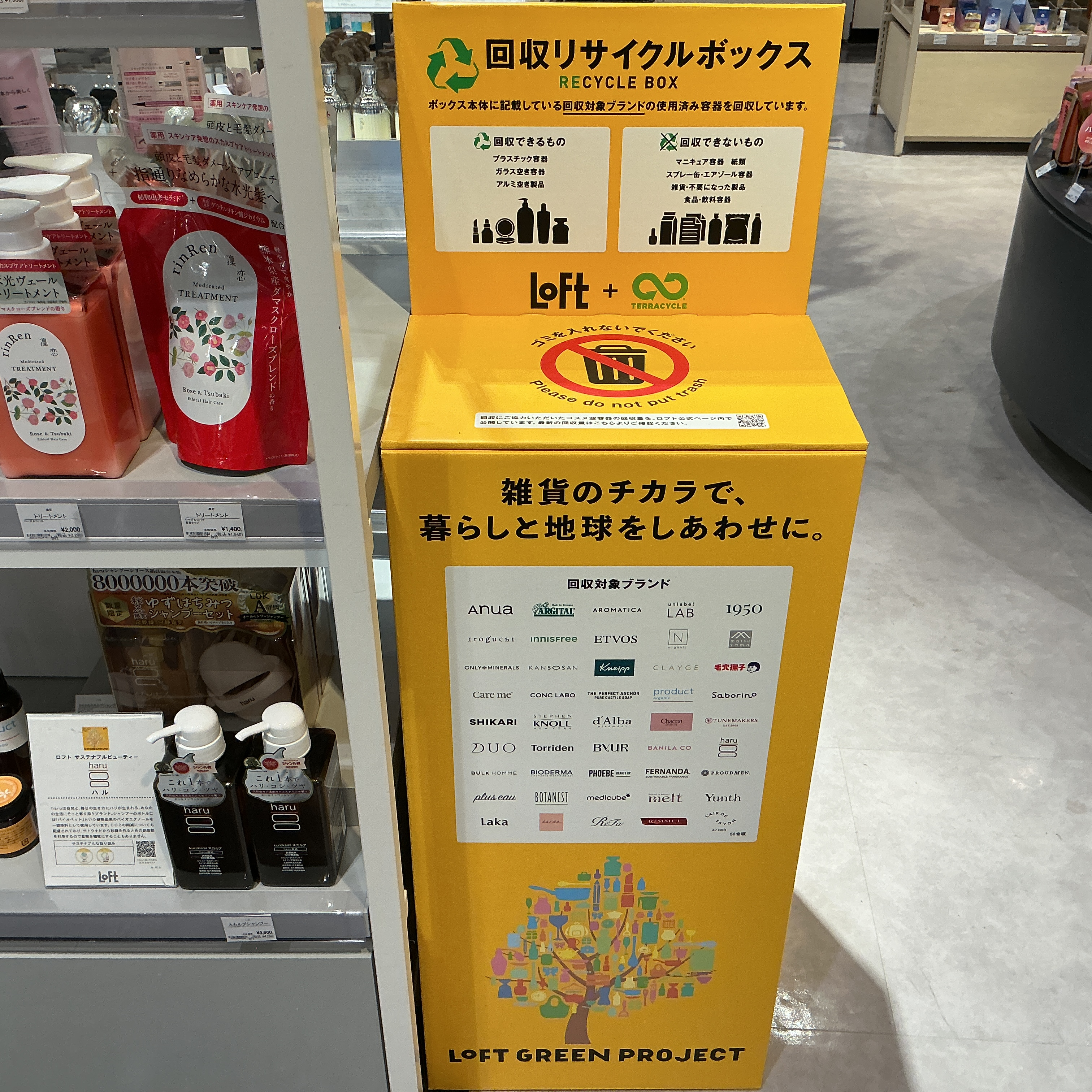 また、店頭では資源回収の取り組みとして化粧品の空容器を回収しています。該当のものがございましたらぜひお持ちください。