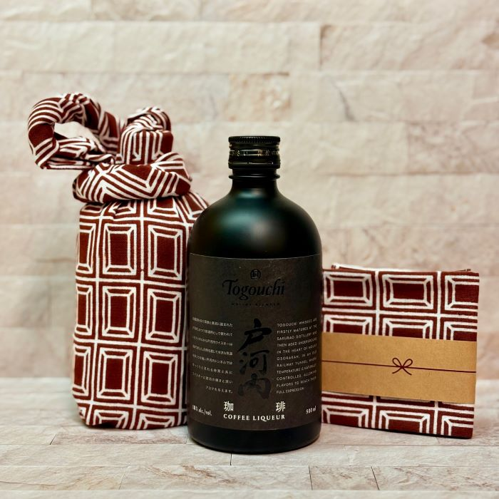 コーヒーやチョコ味のお酒は、チョコ柄やクッキー柄の手ぬぐいで包んで。