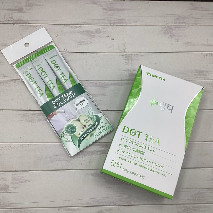 みどり色の「ドットティー」は、青リンゴ味でビタミンB1やビタミンDをチャージ!