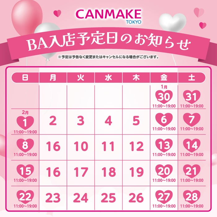 ※BA入店予定日はイベントカレンダーをご参照ください。