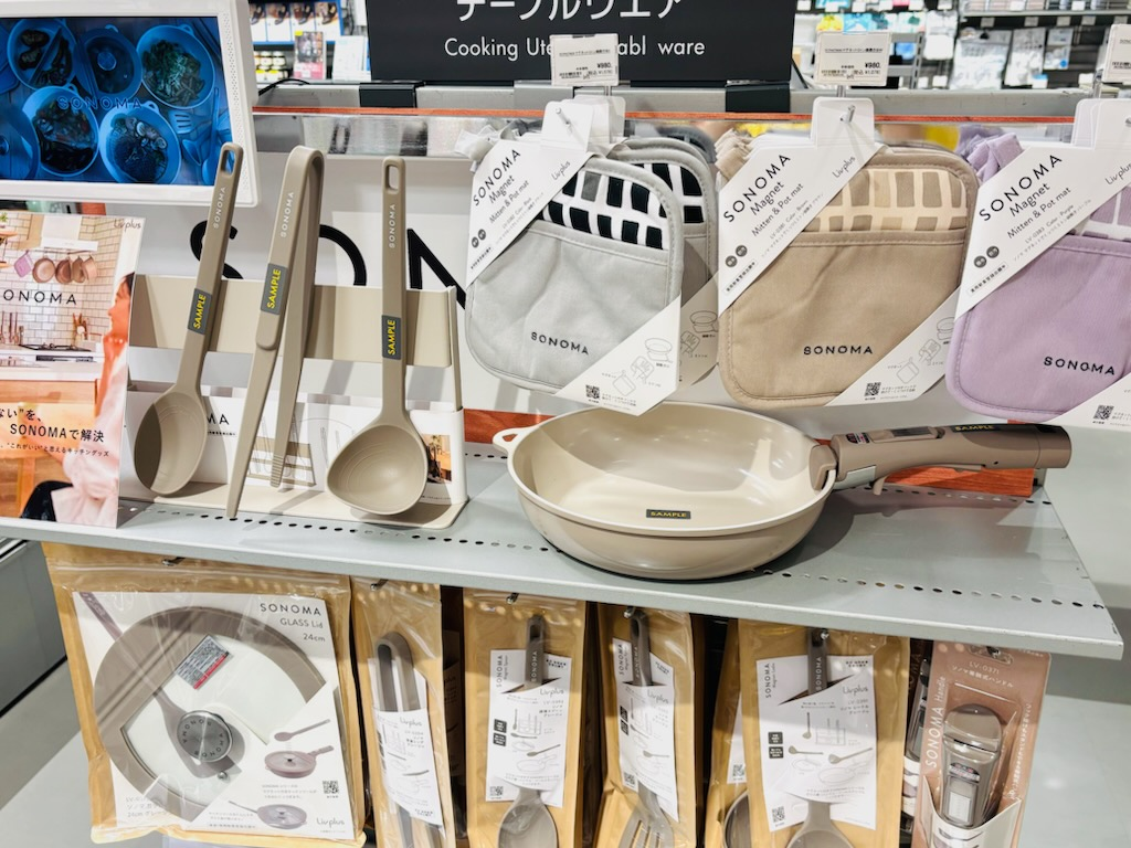 生駒ロフトより新商品のご紹介です。只今、期間限定で展開中のキッチンツール新ブランド、SONOMA(ソノマ)。SONOMAとは、「そのままでちょっと便利」をテーマにしています。